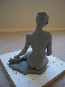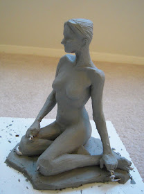 I also ran into a problem on this particular pose: bending the underlying armature in the right place. As you can see by the silver wire coming through the knee areas, I overestimated where the legs should bend. I thought I'd estimated correctly, but apparently not!